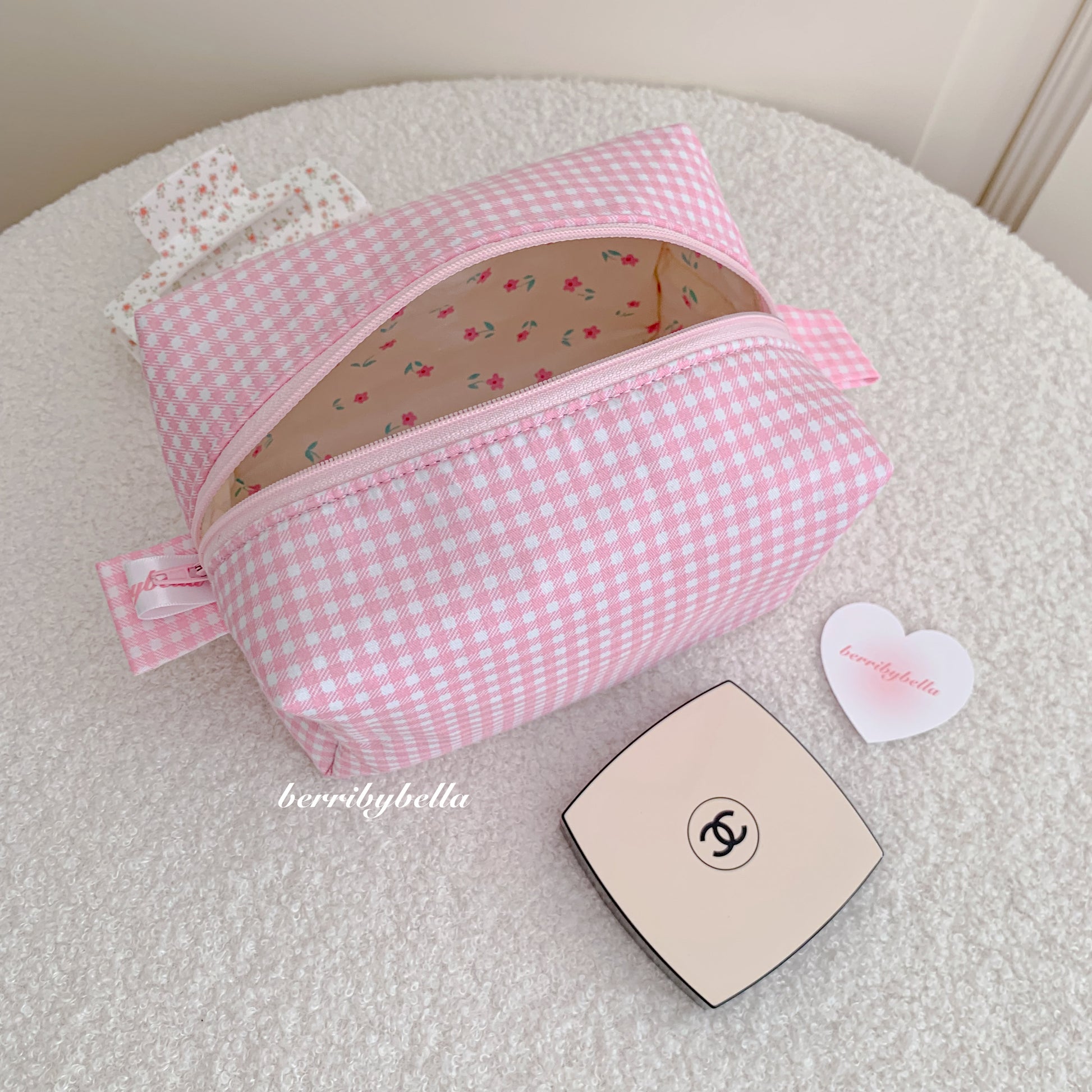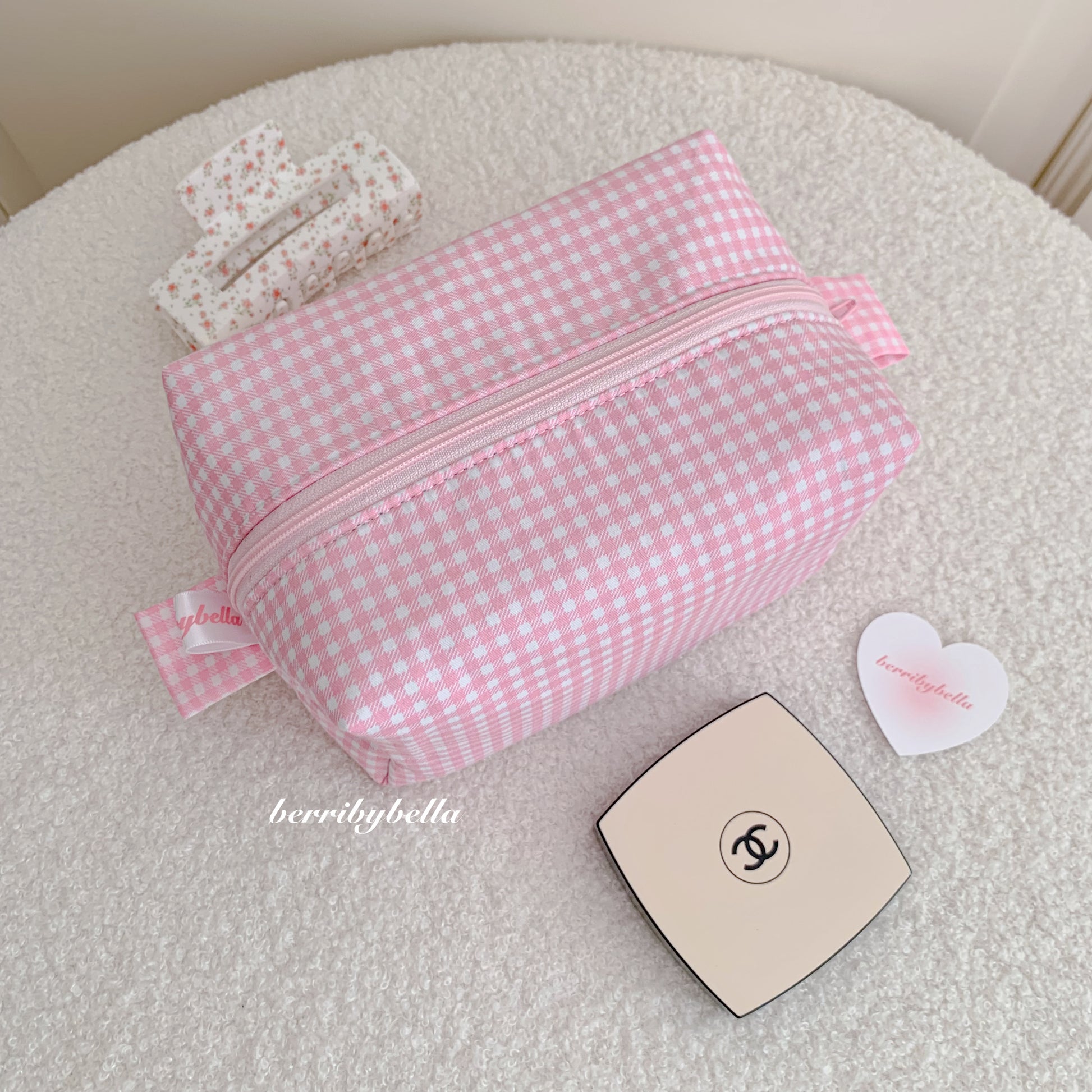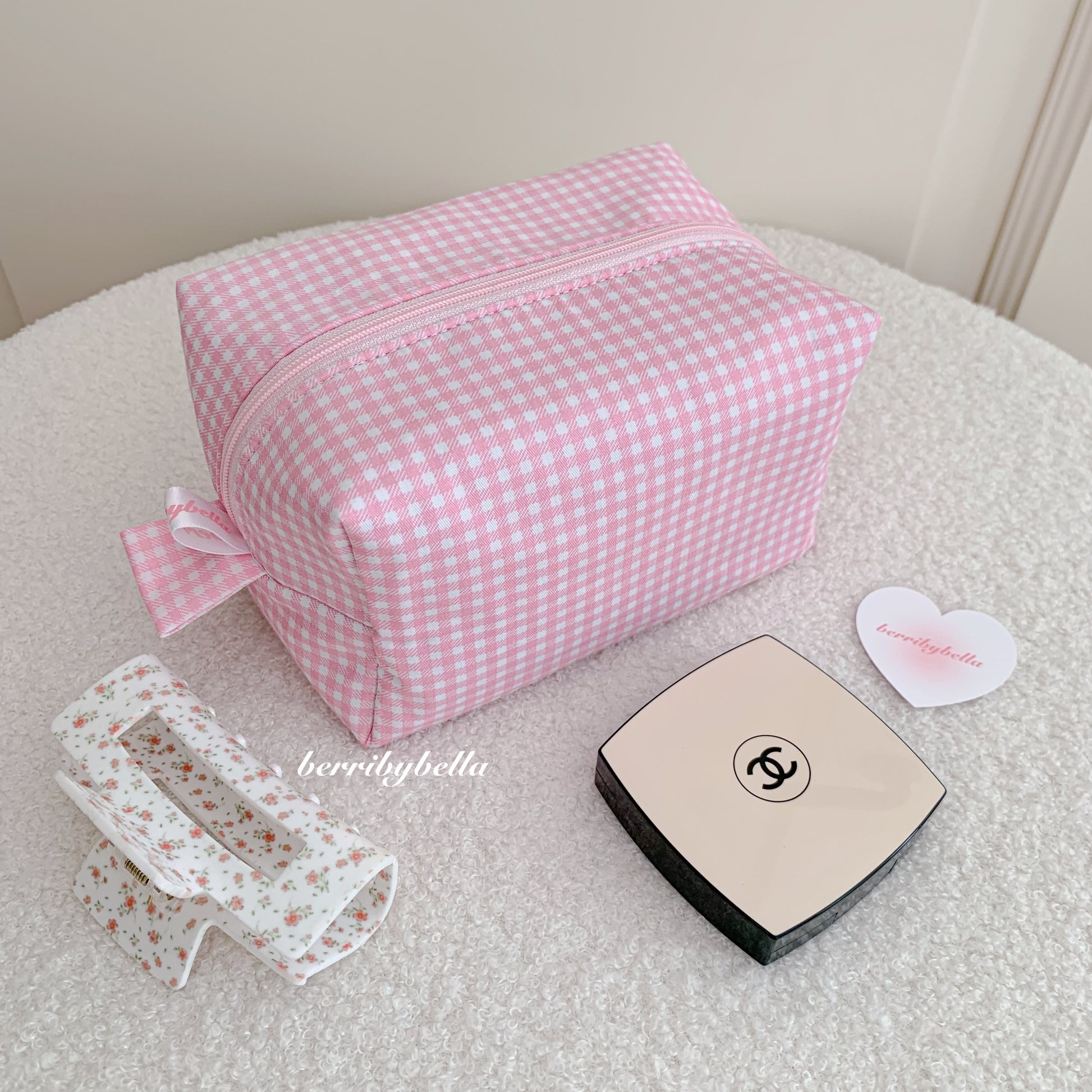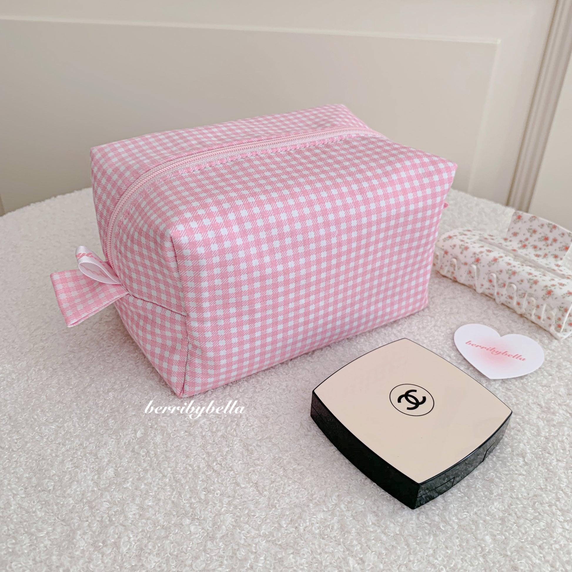 Pink Gingham Makeup Bag